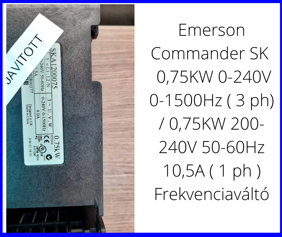 Emerson Commander SK 0,75KW 0-240V 0-1500Hz ( 3 ph) / 0,75KW 200-240V 50-60Hz 10,5A ( 1 ph ) Frekvenciaváltó